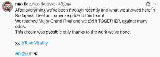 Twistzz:这是一段多么不可思议的旅程!今天的胜利不属于我们,Vitality确实强大到我们难以招架。
