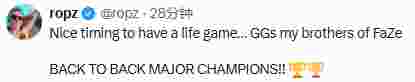 ropz:真是打出生涯巅峰的好时机啊……GG,我的FaZe兄弟们"
