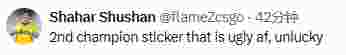 flameZ:第二个冠军贴纸,丑得离谱,真倒霉。