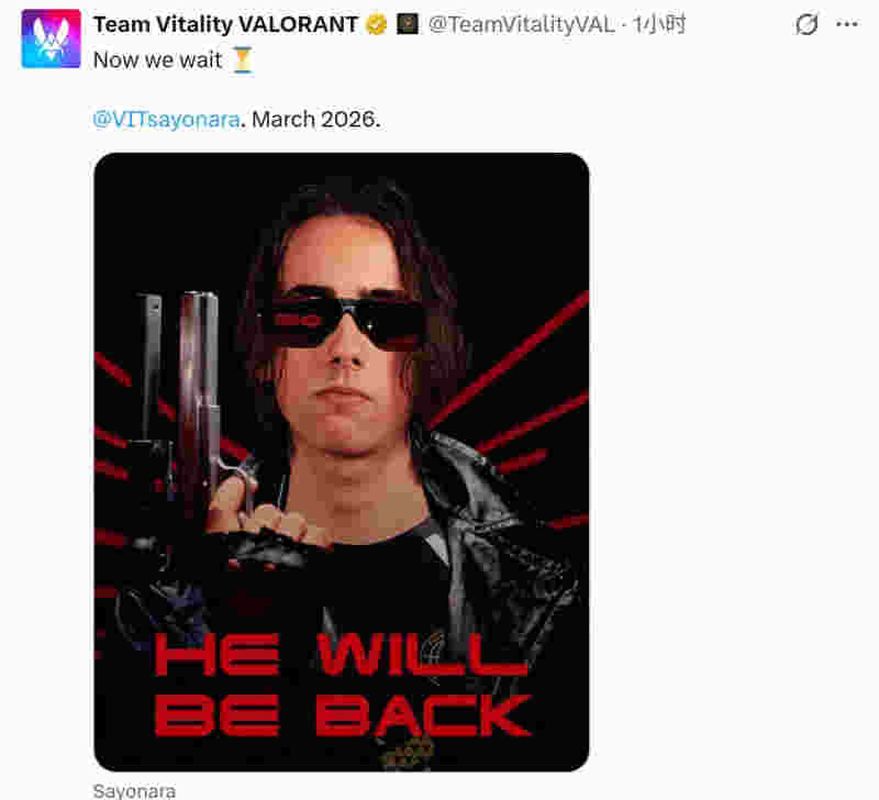 但由于Sayonara出生于2008年3月4日,在明年3月生日前他还未满18岁,不能参与VCT赛事,因此VIT宣布他将于明年3月份回归。