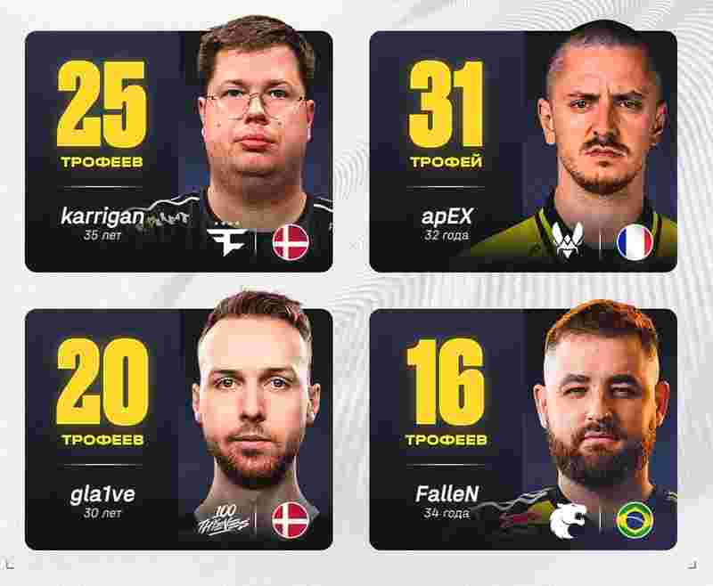 2. karrigan (35岁):25座奖杯。虽然在布达佩斯的决赛中遗憾落败,但作为榜单中最年长的选手,karrigan依然保持着世界顶级的带队能力。25座奖杯证明了他横跨CS:GO到CS2时代的漫长统治力。