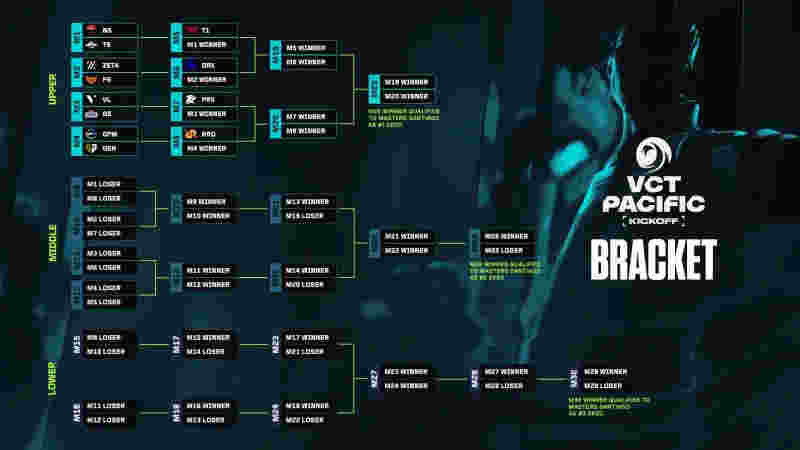 VCT太平洋官推公布将于1月22日开赛的2026太平洋启点赛首轮以及第二轮对阵: