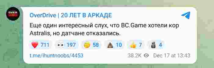 OD写道:“另有一则有意思的传闻,BC.Game曾有意收购Aastralis的核心阵容,但这支丹麦战队回绝了这笔交易。”