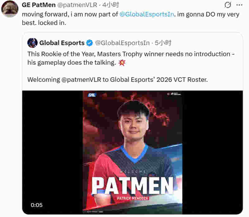 Patrick Mendoza | PatMen加入后,PatMen发文:接下来,我会是GE的一员了,我会竭尽全力、专注。