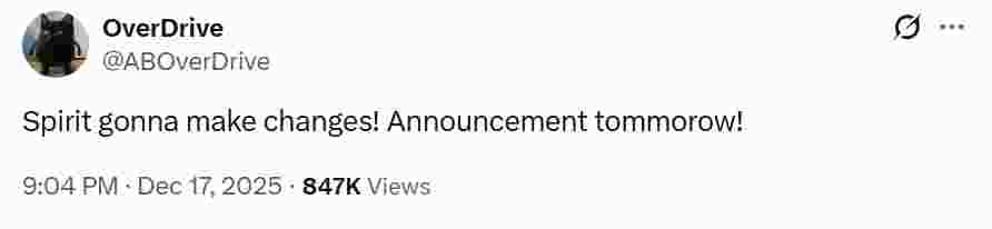 此前,OverDrive曾宣称Spirit将进行人员调整。变更公告预计于今日发布。俱乐部未对相关传闻置评。