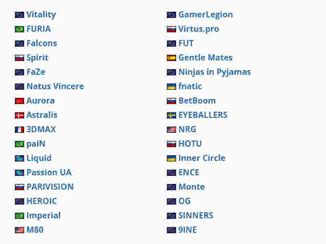最终BLAST赏金赛2026第1赛季全部32队名单如下: