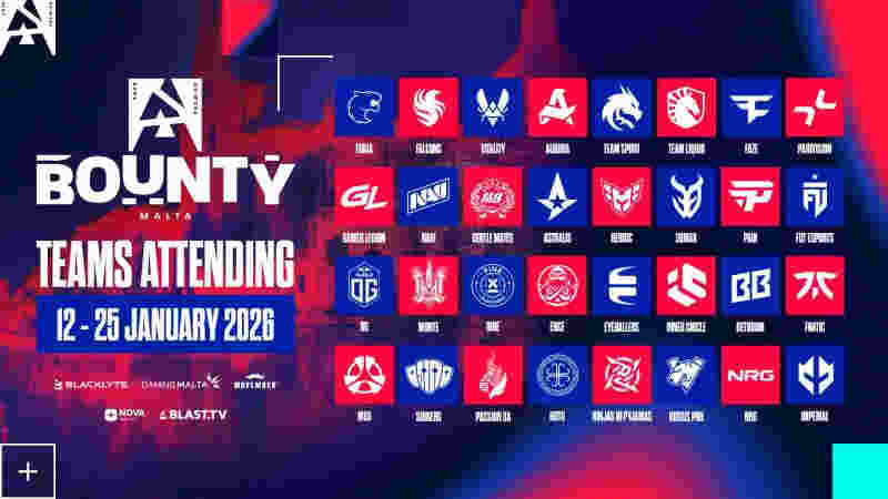 BLAST官方公布了BLAST赏金赛2026第1赛季的32支参赛队伍名单,该名单基于12月1日的VRS官方排名确定。