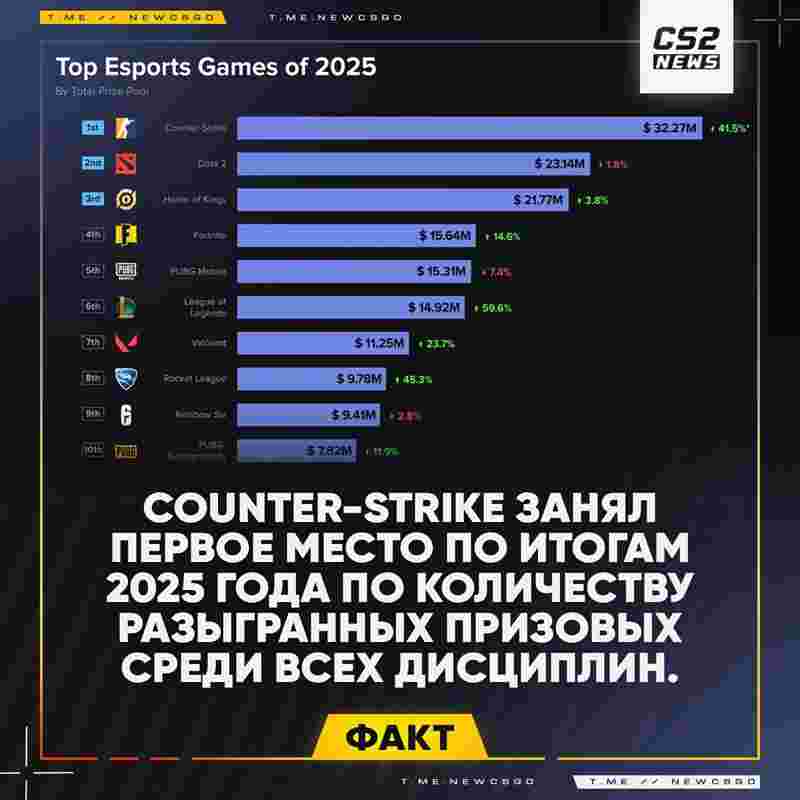 今年CS2大赛奖金总额排在所有游戏首位,总金额为3227万美金,紧随其后的是Dota2和王者荣耀。
