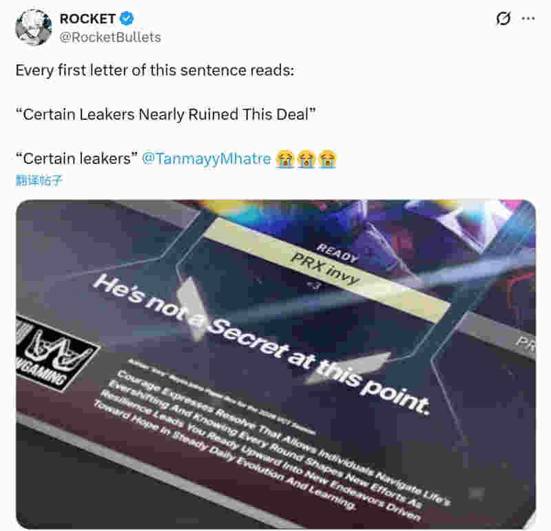 Paper Rex由某位外媒爆出,而昨日PRX正式官宣invy时的文案被网友发现暗藏玄机:
