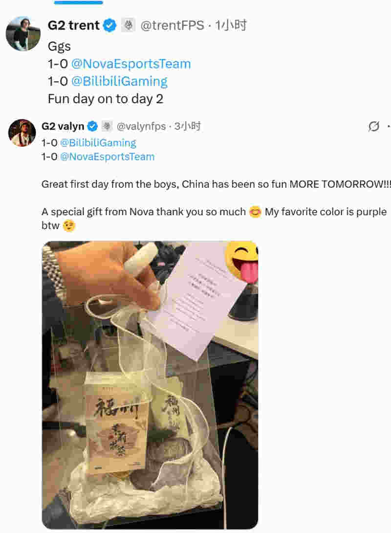 Jacob Batio | valyn:队友第一天都打得很好,在中国太开心了,明天还有更多!非常感谢NOVA送的特别礼物!顺便说一下,我最喜欢的颜色是紫色。