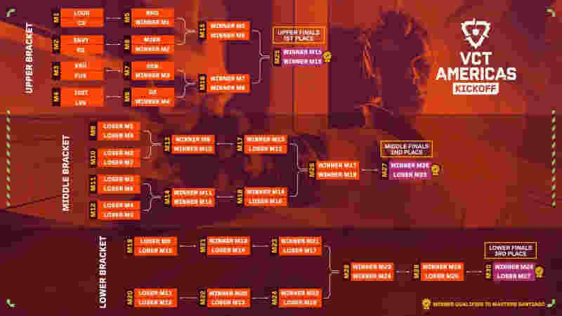 VCT美洲官推公布将于1月15日开赛的2026美洲启点赛首轮以及第二轮对阵: