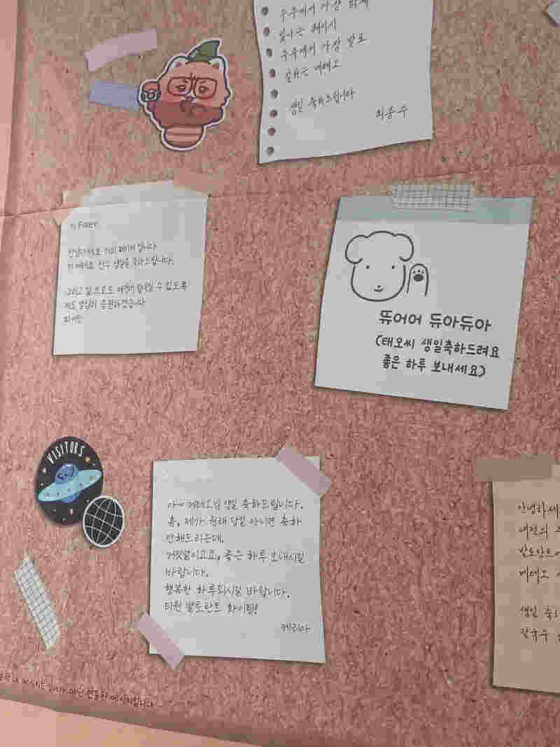 Kim Tae-oh (김태오) | Meteor的26岁生日,在生日cafe里有来自英雄联盟分部Faker和Keria的手写生日祝福便签,大意如下: