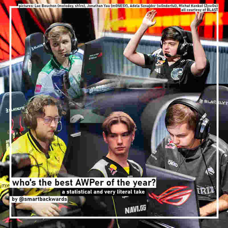 在文章开头我们大致把他的复盘总结为几个基本的观点:年度最强狙击手m0NESY与molodoy,ZywOo的无效起狙回合占比比sh1ro多,同时sh1ro被严重低估,他在AWP回合影响力所有选手第一。