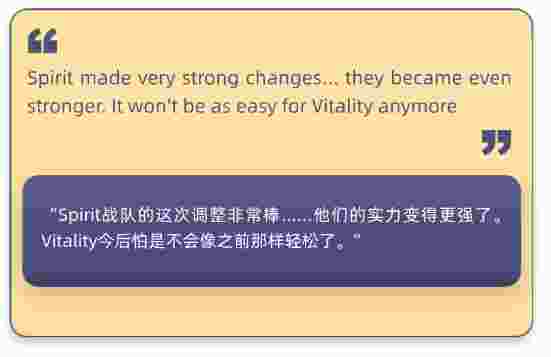 zont1x的回归将让Spirit重回巅峰,新的Spirit将成为Vitality的最强挑战者。
