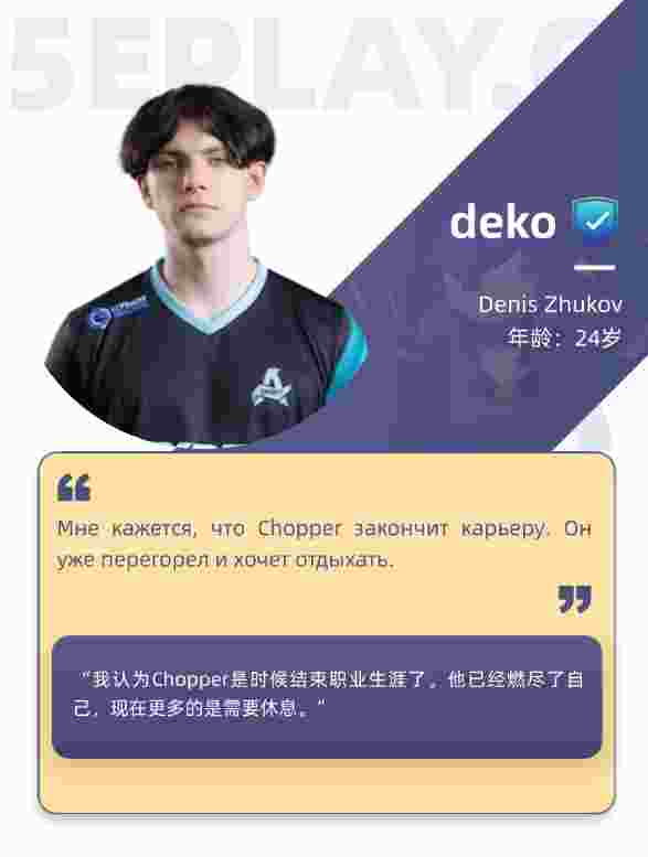“我认为chopper是时候结束职业生涯了。他已经燃尽了自己,现在更多的是需要休息。”deko分享道。