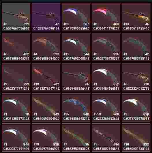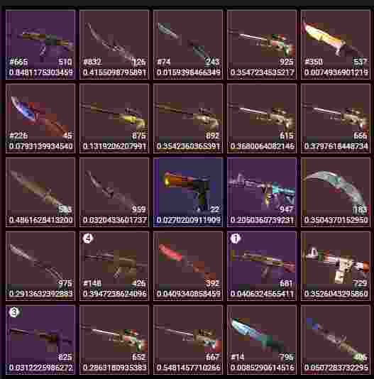 收藏的核心是刀和AWP,其中许多在稀有度和磨损度洁净度方面名列前茅。其中包括: