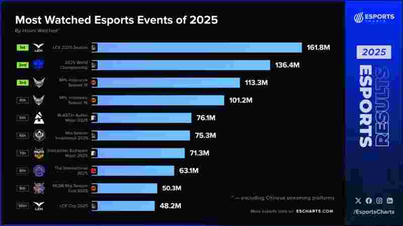 BLAST.tv 奥斯汀Major与StarLadder 布达佩斯Major入选2025年全球电竞赛事观看时长前十名。