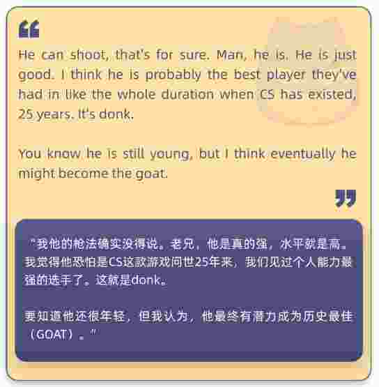 donk的看法,ropz在简单思索后给出了极高的评价。在他看来,这位天才少年是CS这款游戏问世25年来天赋最出色的选手,考虑到donk的年龄,他最终将很可能成为历史最佳的CS选手。