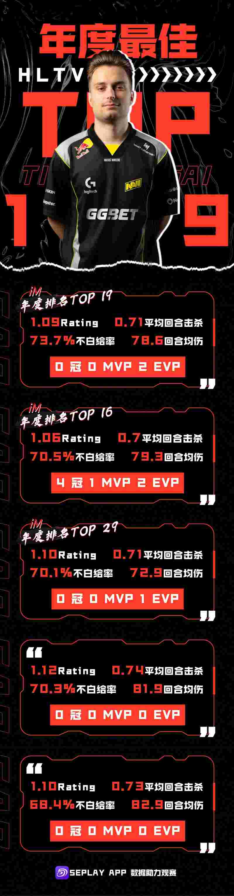 iM荣获了HLTV在今日凌晨公布的2025年度最佳选手第十九名。这是他五年来第二次跻身年度最佳选手TOP20榜单。