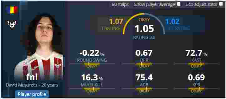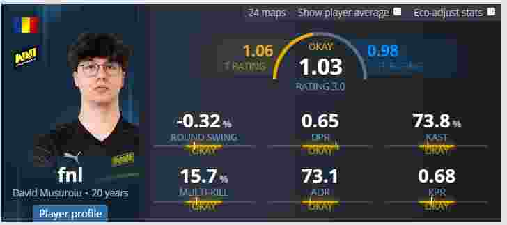 NAVI Junior,期间他的数据平平,拿到1.03 Rating、73.8% KAST,回合影响力为-0.32%。