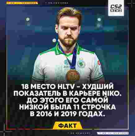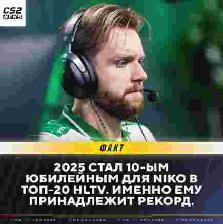 NiKo成为CS史上首个十次入选HLTV年度TOP20的选手。HLTV排名第18位,这是NiKo职业生涯里目前为止的最低排名。在此之前,他的最低排名是2016年和2019年的第11位,这个创造历史的纪念日对NiKo来说过得不算太好。