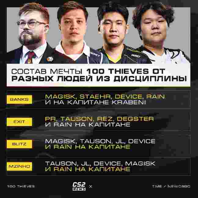 100 Thieves阵容,大多数人对rain转指挥表示赞同,同时认为应该引入