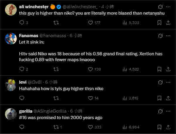 “这家伙的排名比NiKo还高?你这偏心程度简直超过内塔尼亚胡(以色列总理)了。”