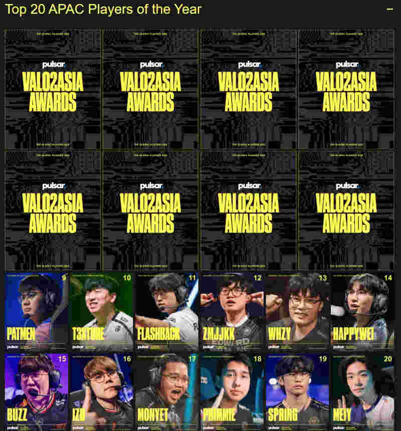 外媒评选2025 VCT亚太地区最佳选手TOP20,第9名-第10名结果如下: