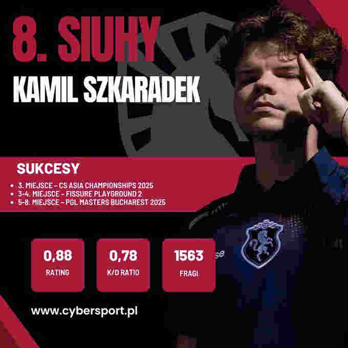 G2指挥、老将Snax仅排第四,而明星指挥siuhy更是位列第八。此外,知名选手如dycha、kRaSnaL、F1KU等人均未进入前十,显示出波兰新一代选手的激烈竞争格局。