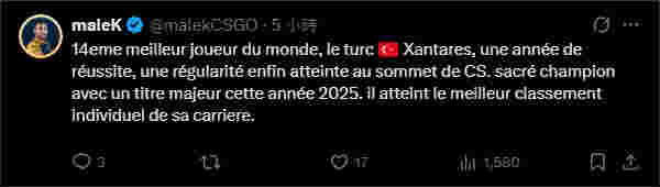 教练maLeK:世界排名第14位,这是属于XANTARES成功的一年,终于在CS顶级赛场收获了认可。他在2025年加冕重要赛事冠军,并达到了个人职业生涯的最高排名。