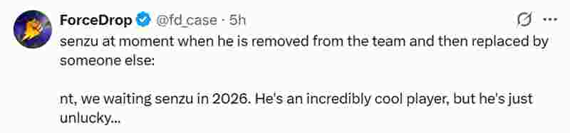 不少粉丝对Senzu不会在2026年回归MongolZ感到遗憾:“当Senzu被移出战队并由他人替代时,虽然遗憾,但我们期待2026年的Senzu回归。他是一位极具天赋的选手,只是运气稍显欠缺……”
