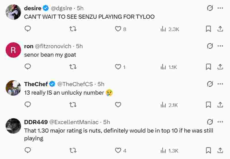 社区大多数言论对于这位缺席了2个月的选手表示包容,认为他排名13实至名归,甚至不乏评价Senzu是亚洲CS GOAT的言论。