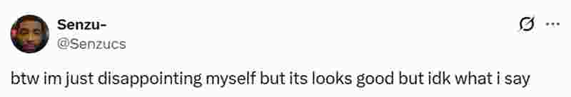 但是Senzu本人似乎对自己略有不满:“话说我只是对自己感到失望,虽然表面看起来不错,但不知该说些什么。”