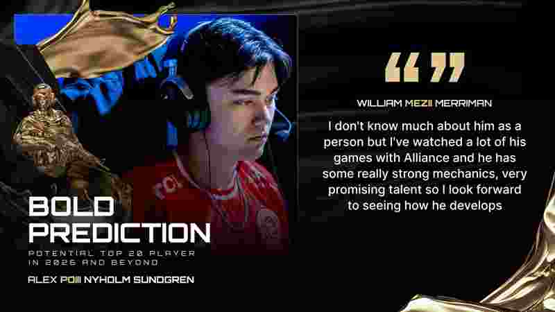 早些时间HLTV公布了2025年度最佳选手排名,mezii收获了TOP12的荣誉。而在明日之星环节他推荐了