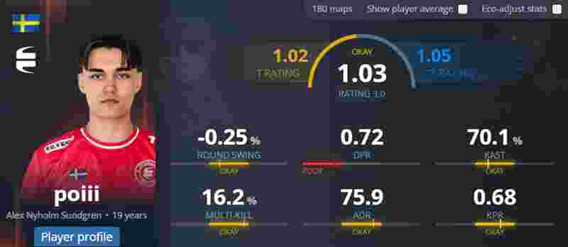 EYEBALLERS,这期间他的状态波动明显。Dust2瑞典POWER大师赛3、Suicide Zero慈善杯2024两个C级赛事的1冠1亚并不能掩盖poiii状态的下滑,在队期间1.02的rating离年初差的不是一星半点。尽管如此,队伍中的传奇老将JW还是对其给予了高度肯定:“他是瑞典下一位超级巨星。”