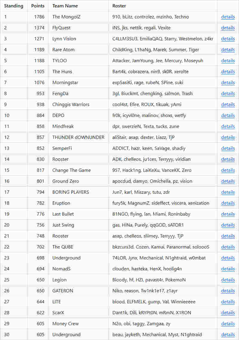 Rare Atom反超了TYLOO位列第四,TYLOO则下降至第五名。