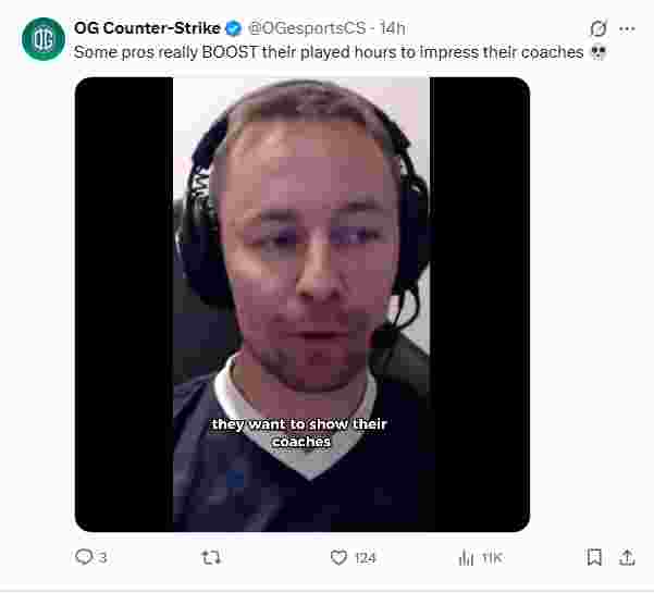 “我曾经和很多人一起集训,他们睡觉的时候都不关电脑,游戏也一直挂着。有时候他们接受采访,会说自己的CS游戏时长已经达到了22000小时,我心里就会觉得,这其实不是真实的时长。有些选手就是想通过这种方式虚增游戏时长,在教练面前表现出自己训练有多刻苦,假装自己很努力。