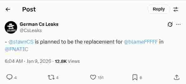 1月3日,该频道透露blameF已与BIG战队签下一份价值40万美元的合同。而至于stavn,他已与昨日官宣离开Astralis。