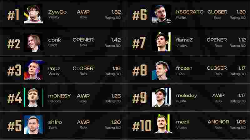 Vitality的“王朝降临”主宰了今年的大多数比赛,但也同样有划时代天才打出的历史级表现,以及诸多新星的熠熠生辉。从加冕Major的超级巨星,到影响力远超数据的选手,这份由CS不同领域的专业人士评选出的榜单,汇聚了十位在2025年代表CS2顶峰的选手。