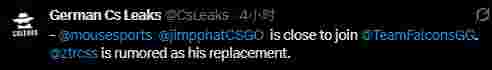 先前社区早有传言称Jimpphat将会在2025赛季结束加入Falcons,目前俱乐部及选手尚未对此发表任何声明。而爆料该内容的媒体German Cs Leaks在今日早些爆料的