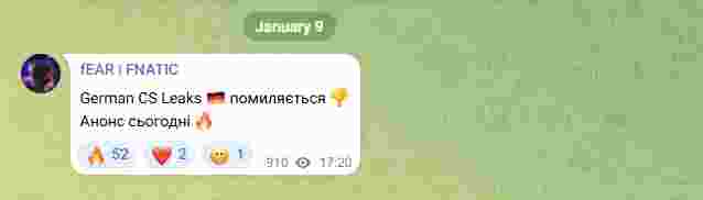 fnatic替代blameF。但就在刚刚,fnatic的队长fEAR就在他的telegram上否认了这则爆料,并且说官宣就在今日。
