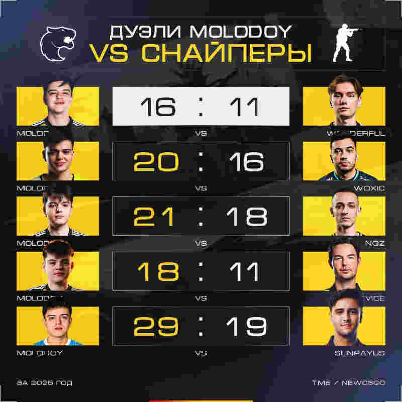 他在过去一年的所有AWP对枪中,没有输掉任何一次狙击对决:对阵ZywOo(22:17)、m0NESY(30:14)、sh1ro(8:6)、910(37:24)、torzsi(20:15)、w0nderful(16:11)、woxic(20:16)、nqz(21:18)、device(18:11)以及SunPayus(29:19)。