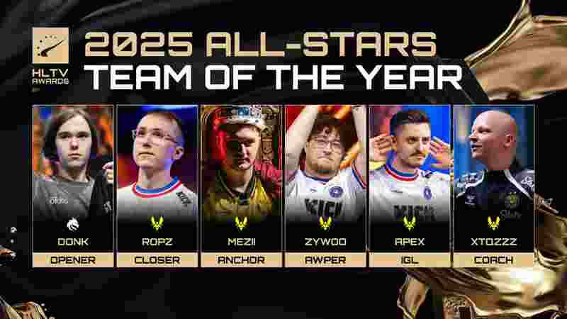 HLTV在2025颁奖典礼上公布了年度全明星队伍的阵容,可谓是相当豪华。