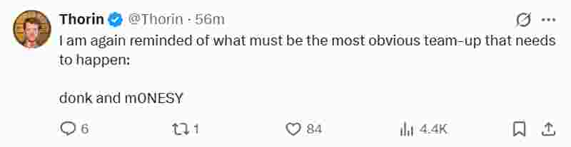 “我又一次想起那个必须实现的最理所应当的合作:donk与m0NESY联手。”