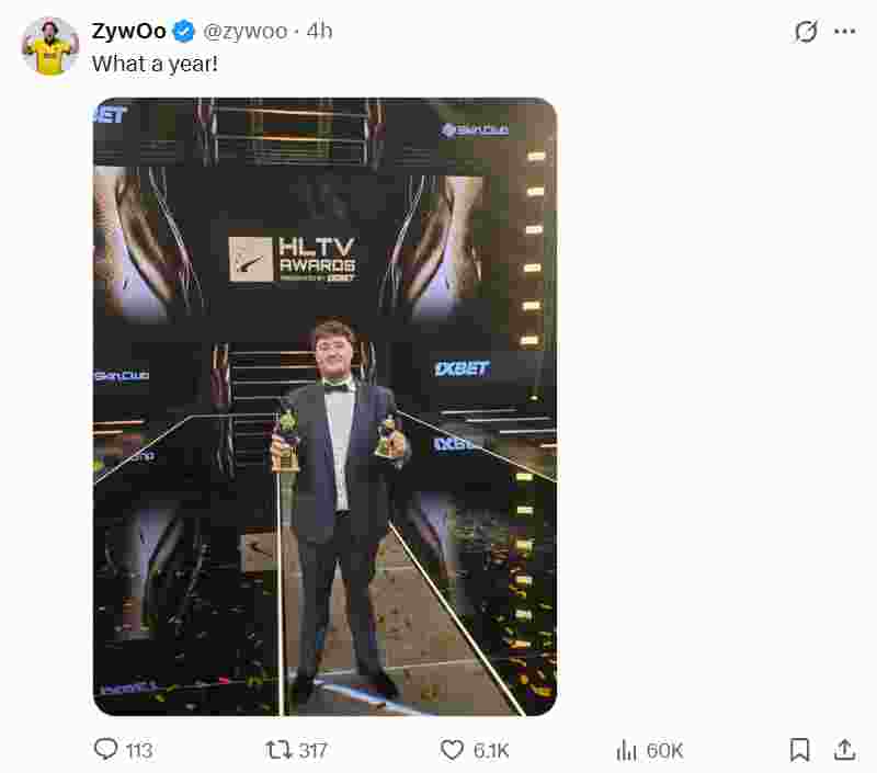 首先是ZywOo自己感到高兴:“多么精彩的一年!”