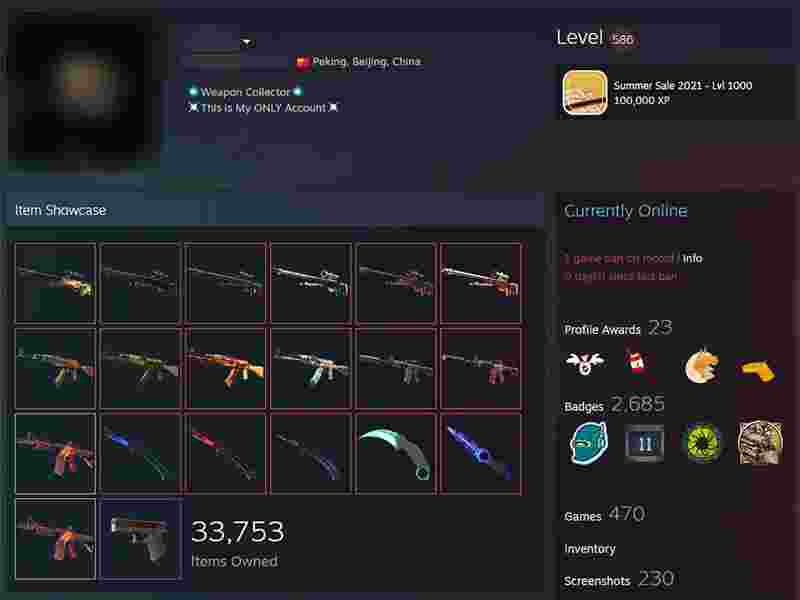 而此次遭封禁的某中国区玩家账号,相关库存显示该账号拥有33753件饰品,库存内的高价值皮肤不胜枚举。