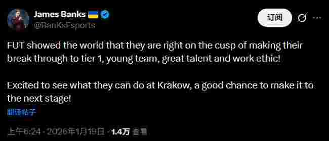“FUT已经向全世界证明,他们即将突破一线门槛进入顶尖行列——这支年轻队伍不仅天赋出众,更拥有非凡的职业素养!非常期待他们在克拉科夫的表现,这将是他们晋级下一阶段的绝佳机会!”