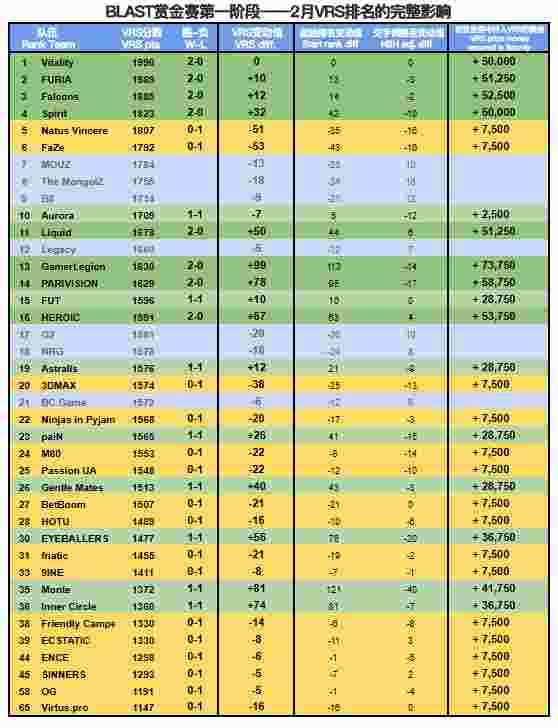 “随着第一阶段赛事的完结,以下是该赛事对二月排名产生的完整VRS影响力总览,所有最终影响均已计入。