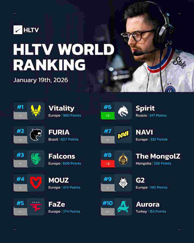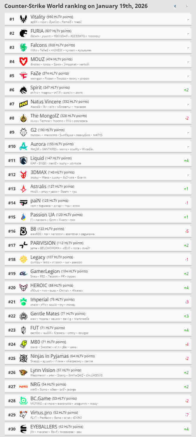 今天凌晨HLTV更新了最新一期世界排名。随着上周BLAST赏金赛线上赛阶段以及一些大型赛事的预选赛结束,参赛的各支战队排名迎来小幅变动。