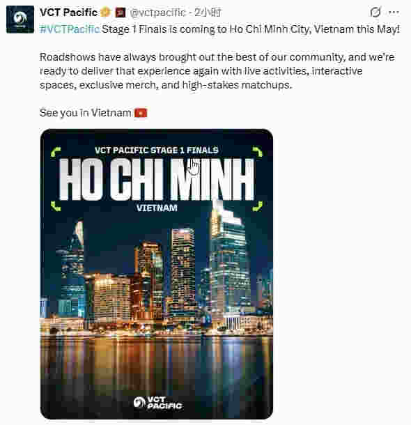 VCT Pacific官方宣布第一赛段总决赛将于五月在越南胡志明市举办,原文大意如下: